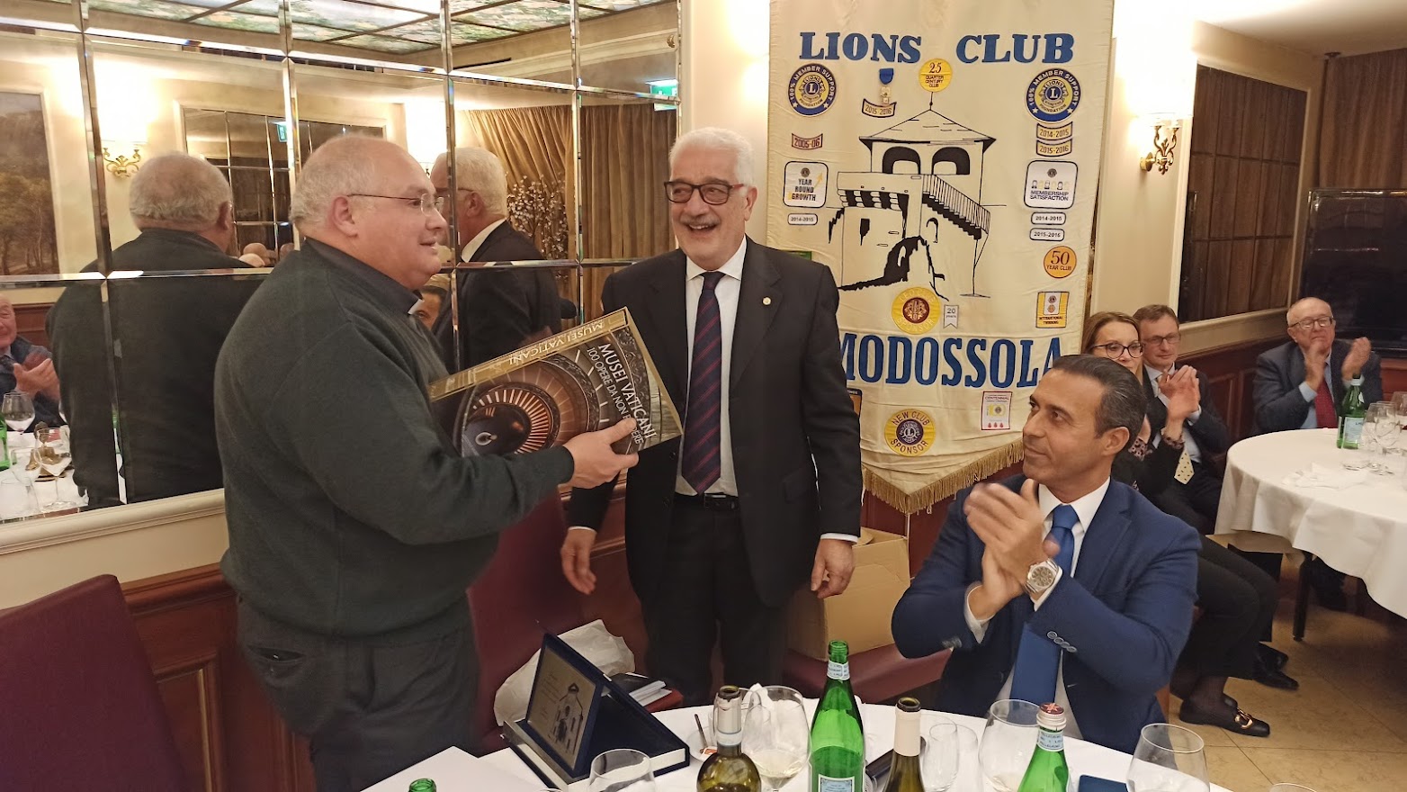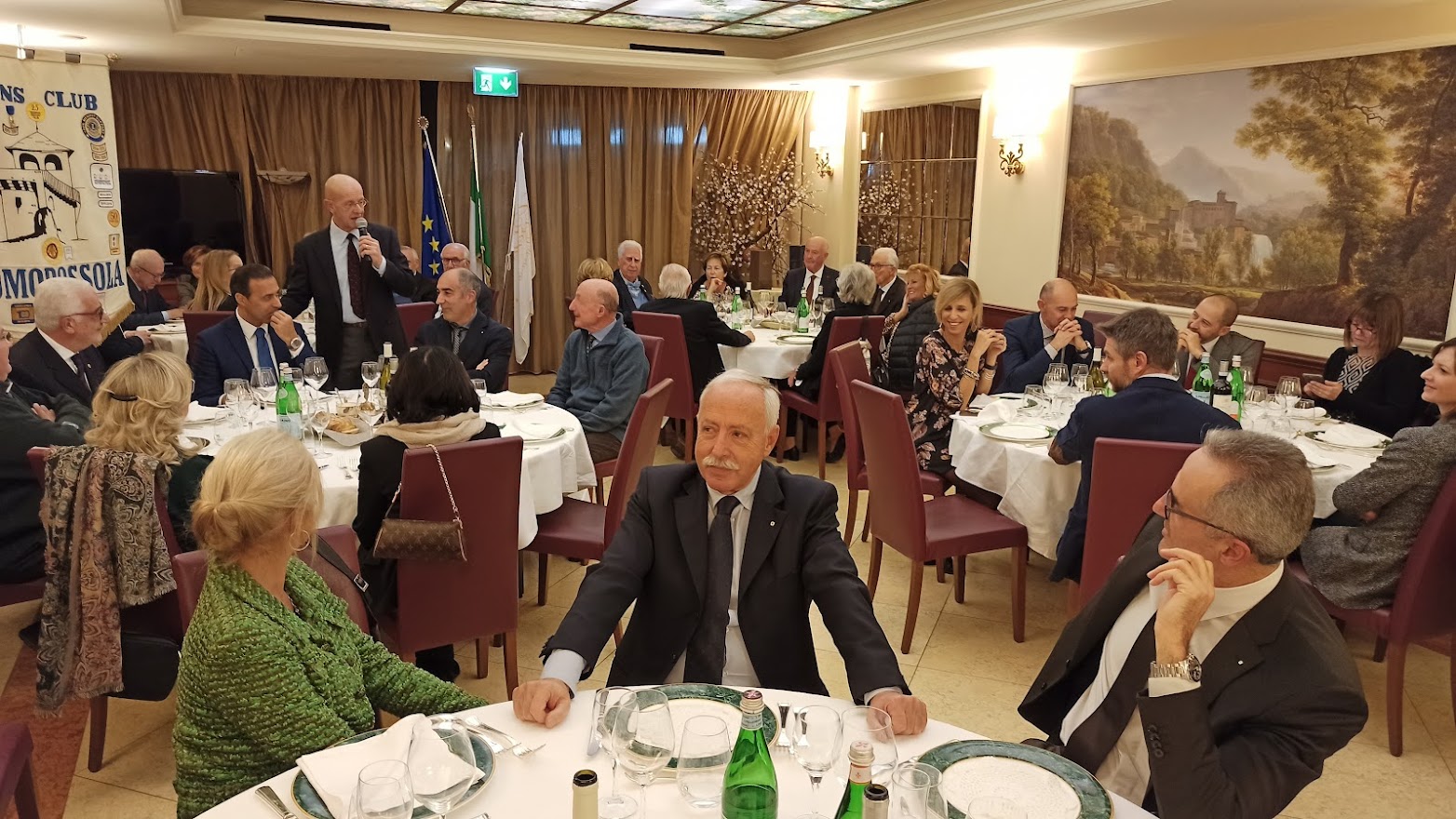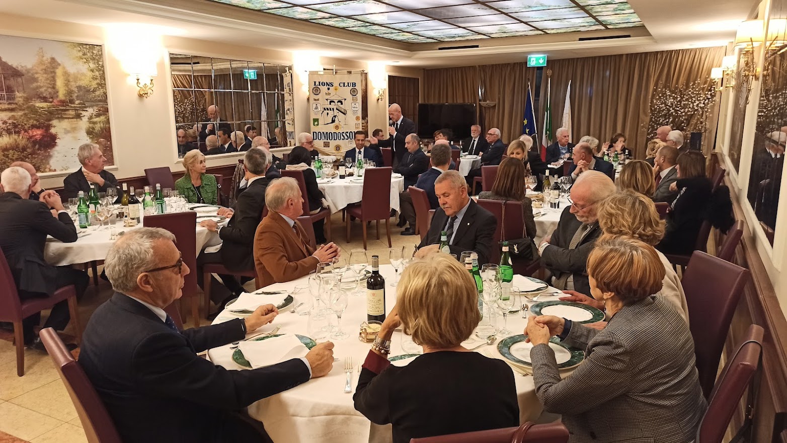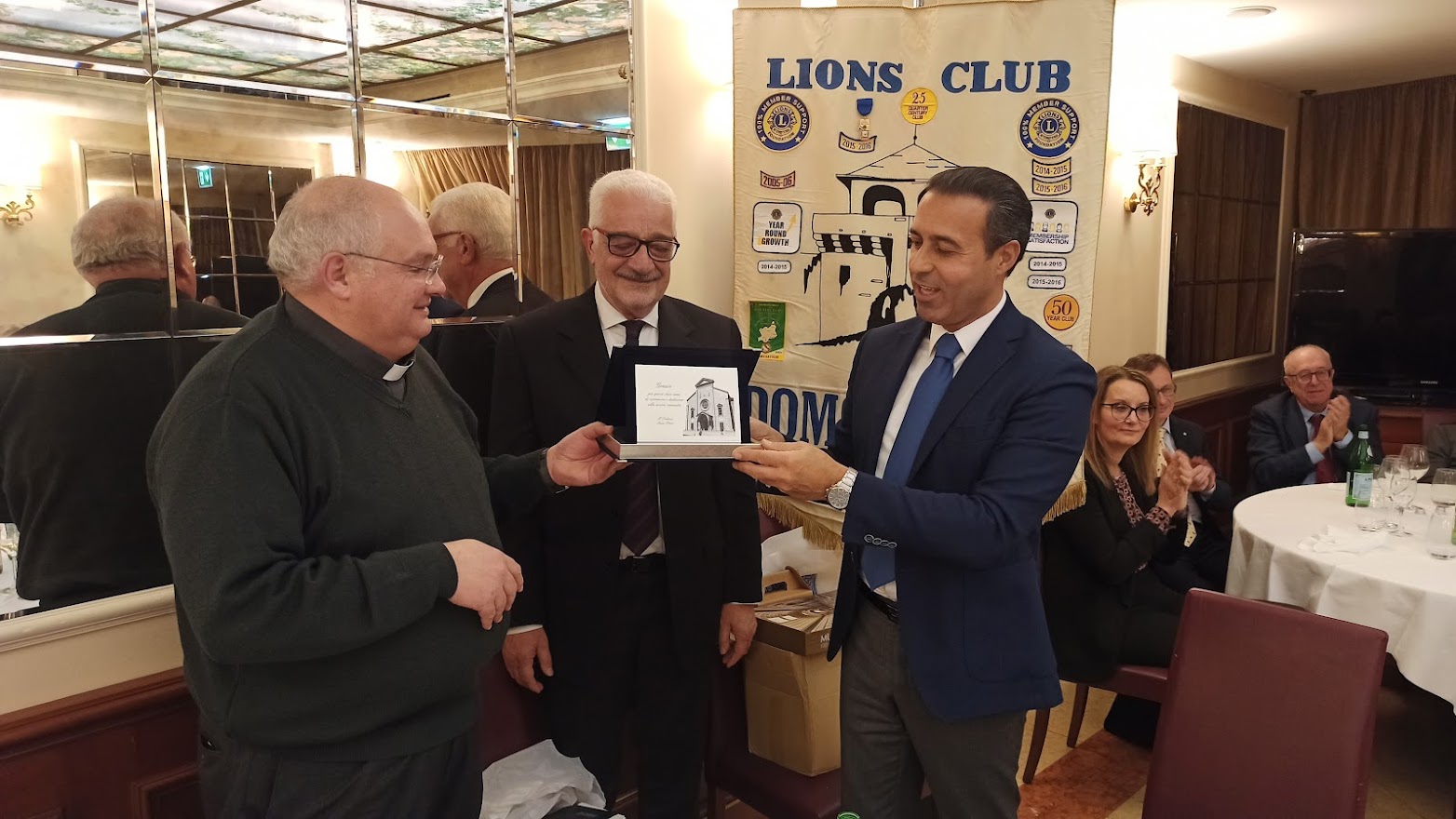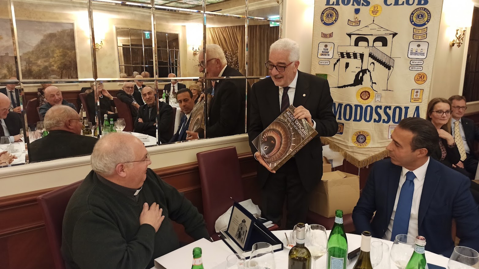 Il titolo della serata “Don Camillo e Peppone, nel segno della tradizione” ci porta ad un altro dei meeting ormai diventati abituali per il Club. Fatta la doverosa presentazione degli ospiti da parte del cerimoniere Enrico Verdi, prende la parola il Presidente per l’usuale saluto ai presenti. Butti nel salutare Don Vincenzo Barone, Parroco di Domodossola, si sofferma sulla data del suo arrivo nella nostra città 2012 …. Sono ormai trascorsi dieci anni; è una data da festeggiare …;  doveroso saluto anche all’altro nostro ospite Lucio Pizzi sindaco di Domodossola ormai al secondo mandato. Vengono consegnati gli attestati e le spille per il riconoscimento dell’anzianità Lionistica ai soci Crugnola per i suoi 35 anni e a Grossi per i suoi 30 anni di presenza nel Club. Dopo la cena, gli ospiti sono invitati dal Presidente al racconto della loro esperienza passata, presente ed ai programmi futuri. Prima di cedere la parola a Don Vincenzo il nostro sommo Vate Antonio Pagani declama dei versi da lui composti in onore del decennale dal titolo “Sembra ieri”. Visibilmente commosso per i festeggiamenti, il Parroco ci racconta dei sui dieci anni a Domodossola che definisce “belli, intensi e con una popolazione vicina e partecipe”. Si è accorto di questo amore “a prima vista” anche il Vescovo che definisce Domodossola “una Diocesi nella Diocesi”. Don Vincenzo ci dice che per lui “la speranza è alla base della ripartenza”. Quasi il 32% delle famiglie ha un reddito inferiore ai € 10.000, con la nostra area maggiormente in difficoltà rispetto alle altre della regione. La distribuzione della borsa viveri da parte delle Caritas è aumentata del 20% e con il pagamento di bollette ed affitti raggiunge la cifra di € 65.000 donati alla comunità. Si sta creando una fascia di nuovi poveri. Riguarda coloro che sono di poco superiori alla fascia di reddito minimo che riceve aiuti economici dallo stato, “silenziosi” ma stritolati dalla nuova situazione economica. Nel focalizzare l’attenzione per scoraggiare coloro che, spacciandosi per bisognosi, approfittano di tutti i punti di aiuto messi a disposizione per accaparrare più risorse possibili, Don Vincenzo ribadisce il suo ringraziamento alla comunità per il grande impegno verso gli indigenti. Termina il suo intervento ricordando che le problematiche dei giovani non sono terminate. La fascia di età dei ragazzi delle scuole superiori è quella più a soggetta a rischi e stimola tutti a mantenere un occhio vigile sulle difficoltà della gioventù. Ringraziandolo per il suo intervento Butti comunica che è in fase di studio e attuazione un service, condiviso con tutti i Club di servizio della zona che farà capo alla Fondazione Comunitaria VCO, per un importo di € 40.000 da destinare all’assistenza dei più bisognosi. Viene, quindi, data la parola al Sindaco che ringraziando dell’invito ci indica anche le nuove emergenze che sono nate a seguito della pandemia per il COVID 19.